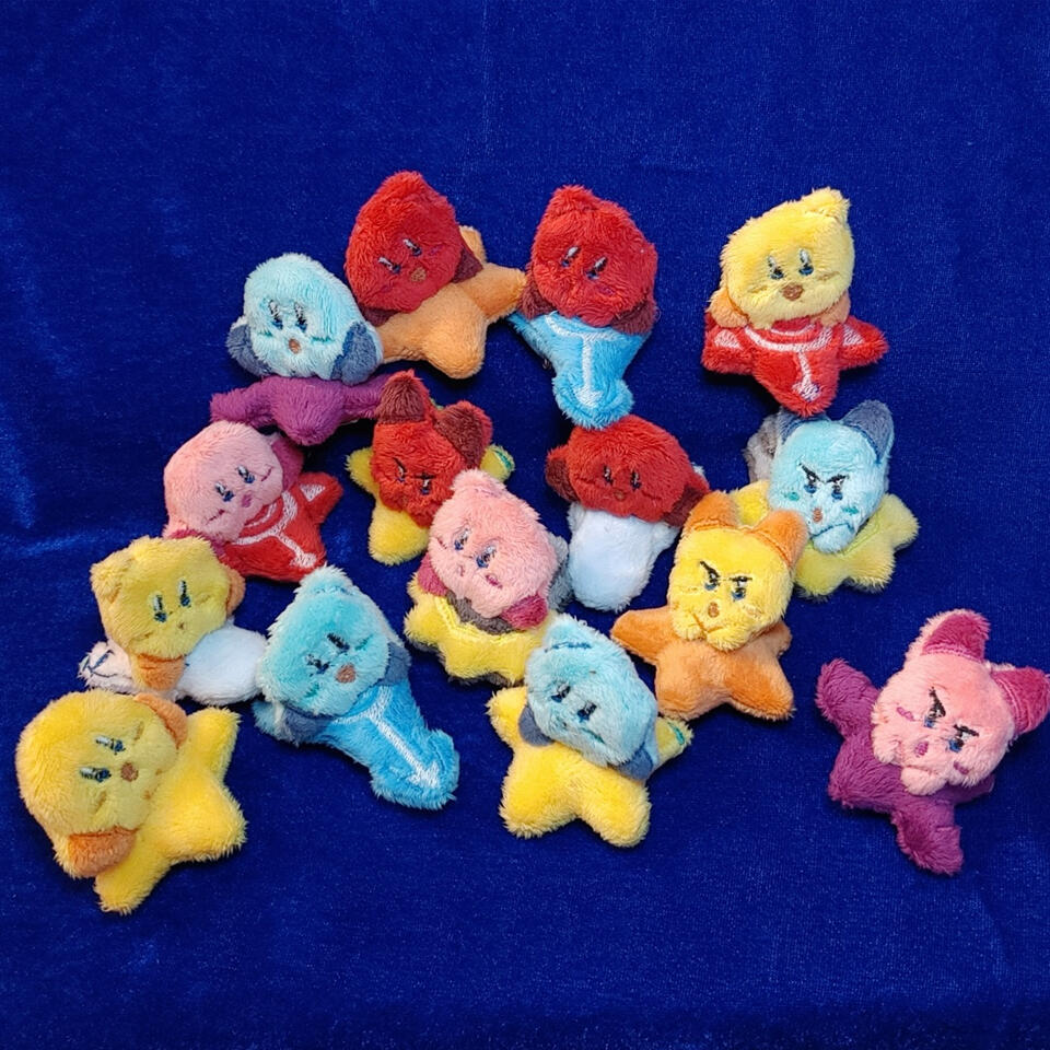 Note: the official plushies have weapons, but mine don't.